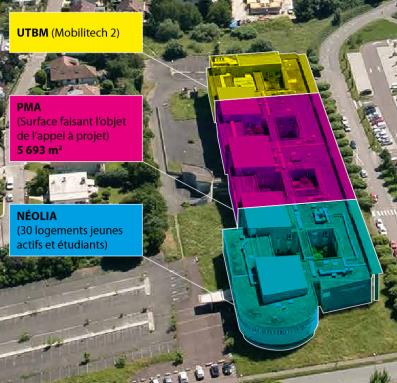 L’ex-polyclinique sera à terme divisée en trois (photo ci-contre) et PMA restera propriétaire de la partie centrale d’une superficie de 5693 m². Cette surface accueillera les différentes structures retenues suite à l’appel à projet lancé par l’Agglomération au printemps 2023. PMA vendra à Néolia la partie qui surplombe l’avenue Léon-Blum pour y réaliser une trentaine de logements pour jeunes actifs et étudiants. L’autre partie du bâtiment sera quant à elle vendue à l’État pour le compte de l’UTBM qui prévoit de regrouper sur le campus, toutes ses activités de formation et de recherche en lien avec la thématique « mobilité ».