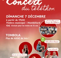 Concert du téléthon dimanche 7 décembre à partir de 17h au théâtre municipal à Montbéliard ! 10 € Gratuit pour les…