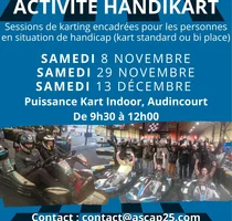 L'ASCAP Karting vous propose une activité handikart le 29 novembre ainsi que le 13 décembre. De 9h30 à 12h00, venez…