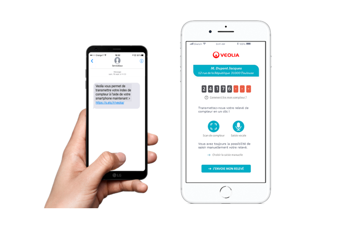 L’abonné reçoit un lien via un SMS, avec identification immédiate. En cliquant sur le lien proposé dans le SMS, l’abonné a trois possibilités pour relever le compteur :